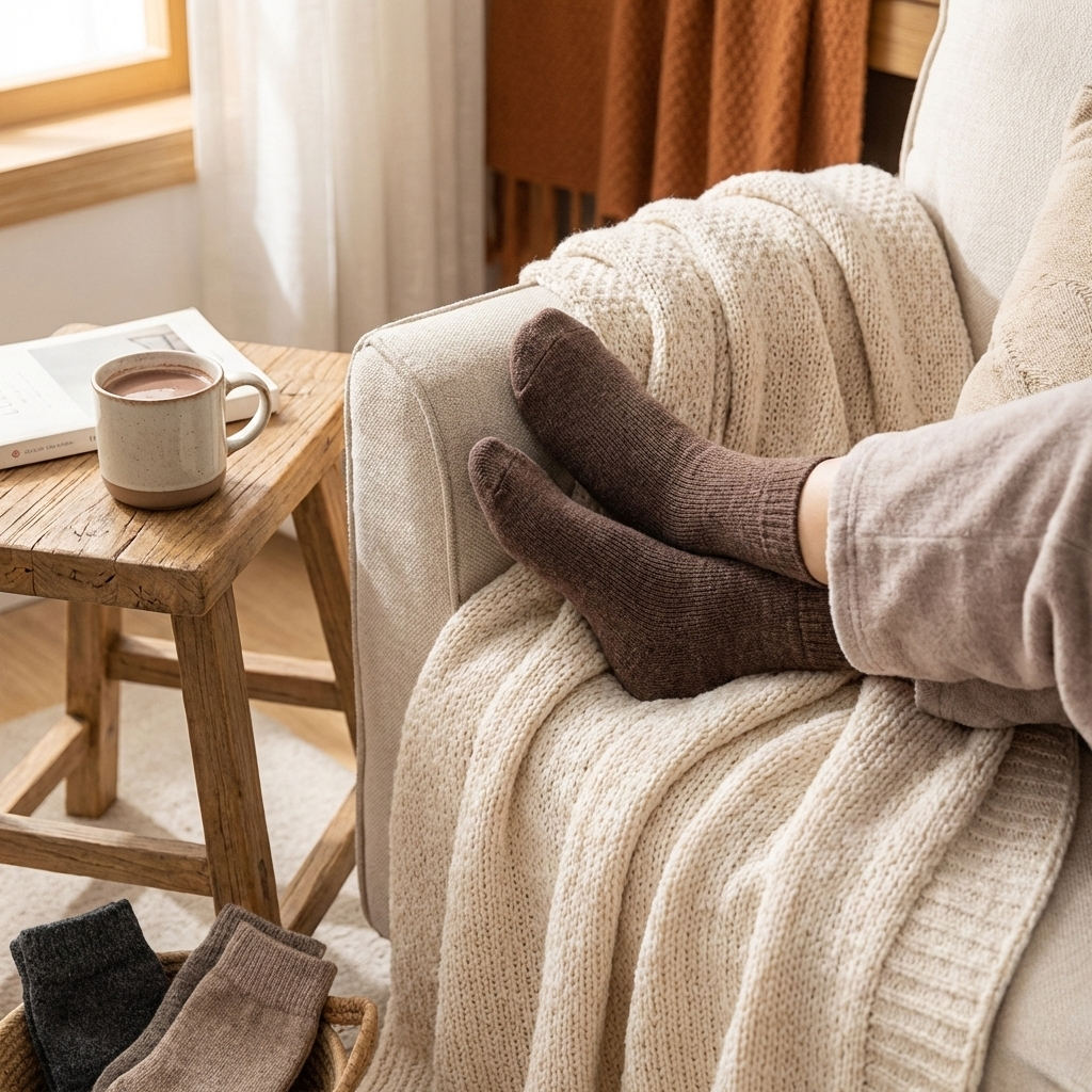 Stell dir vor: Du steigst morgens aus dem Bett und schlüpfst in deine Socken – und sofort fühlen sich deine Füße an wie in einer warmen Umarmung. Das kuschelweiche Thermo-Fleece umhüllt jeden Zeh, während die Premium-Wolle natürliche Wärme speichert.